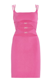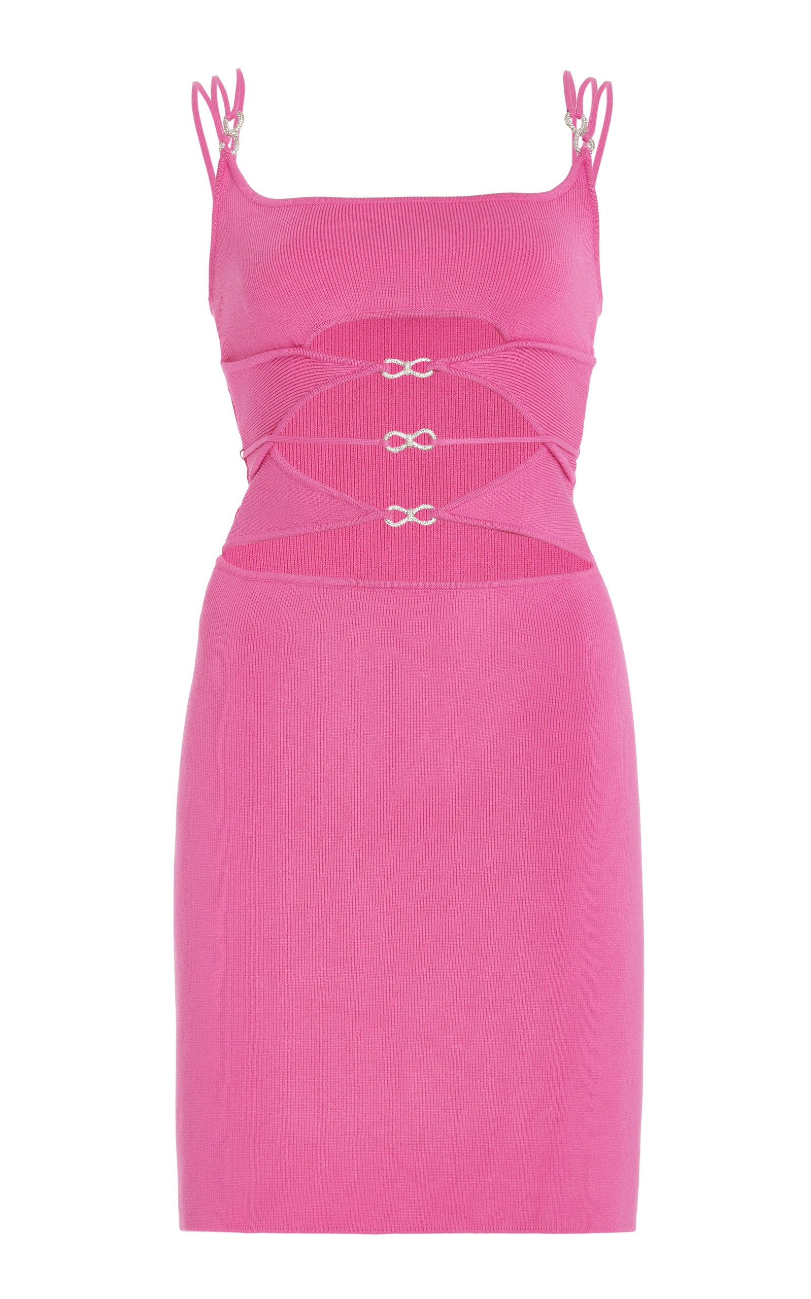 With their line of partywear, the Tbilisi sister duo channels the same fantasy-filled glamour that’s earned their party shoes cult status—with an added ‘90s edge. Barring the embellished denim, jersey bodysuits and suiting, nearly every silhouette is cut in their signature all-weather knit—an uber-soft lightweight fabric ideal for warm weather. This ribbed 'Matilde' mini dress features their signature crystal bows along the front and shoulder straps. Wear yours with the label's 'Cinderella' heels for a fun night out. PRODUCT DETAILS - Zip fastening - Composition: 70% viscose, 30% polyester - Dry clean only - Made in Italy SIZE & FIT - Our model is 180cm/ 5'11" and wearing a size Small - Fits true to size, our fit specialist recommends taking your normal size