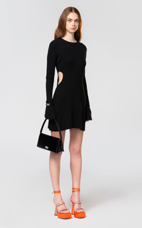 PRODUCT DETAILS - As featured in the Fall '22 lookbook, pair with thigh-high boots in a bright jewel tone - Slim fit, round neck, long sleeves, cutout sides, crystal bow embellishments, mini hem, unlined - Slips on - This style fits true to size, we suggest taking your normal size - Composition: 75% viscose, 25% polyester - Dry clean only - Made in Italy SIZE & FIT - Model is wearing a sample size Small - This style fits true to size - We suggest taking your normal size