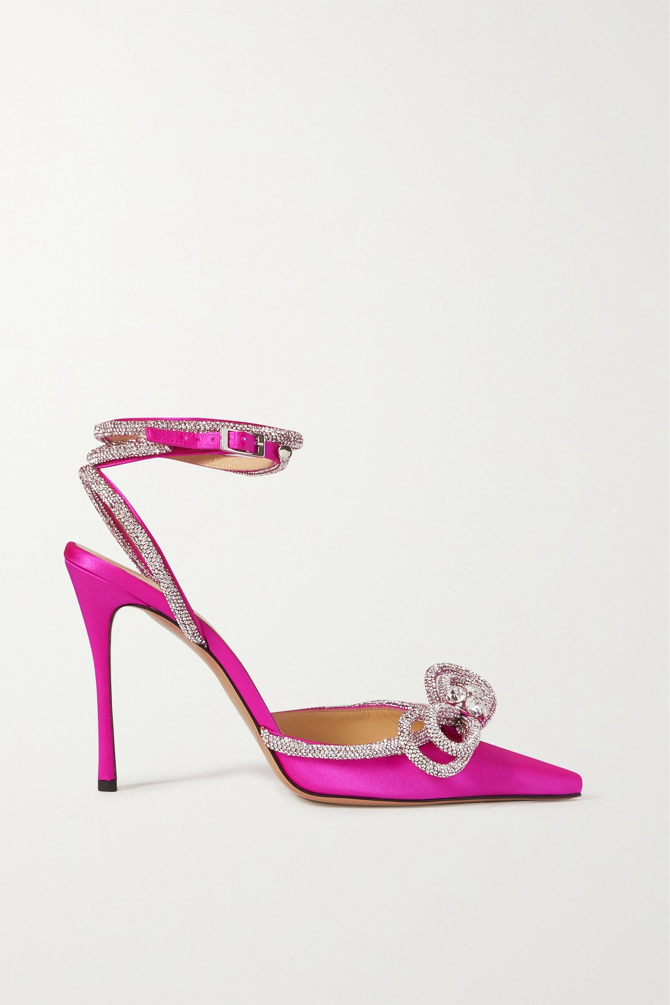 EDITORS'NOTES Simply put, MACH & MACH creates dream shoes - the kind that elevates any outfit and photographs gorgeously (especially with a sparkly filter). Made from silk-satin, these pumps are topped with signature crystal-dusted bows that trace the line of the vamp and ankle strap. SIZE & FIT - Fits true to size, take your normal size - Narrow at the toe - Italian sizing DETAILS & CARE - Heel measures approximately 110mm/ 4.5 inches - Fuchsia silk-satin - Buckle-fastening ankle strap