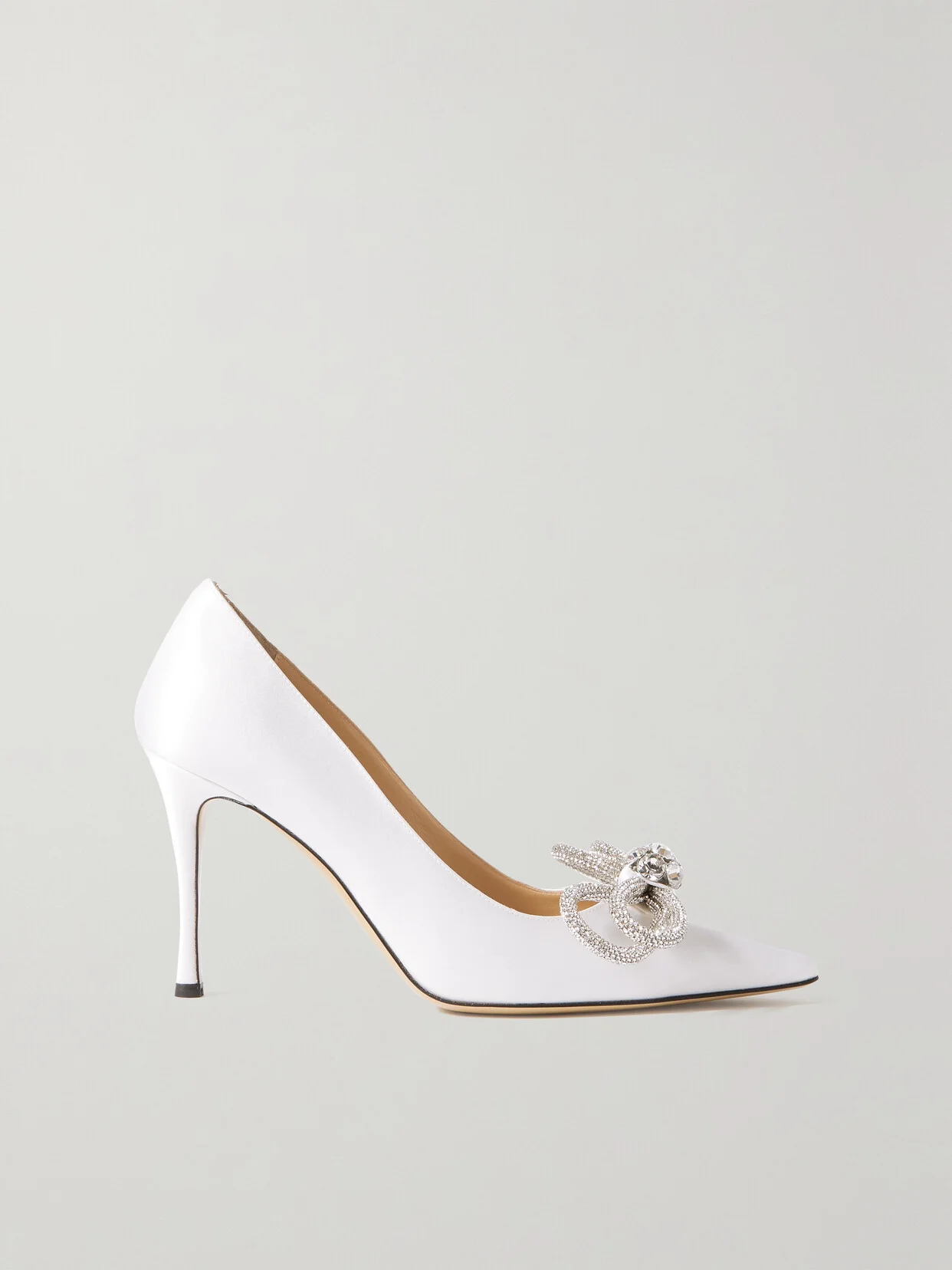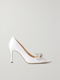 Double Bow Crystal-embellished Satin Pumps
