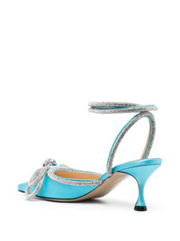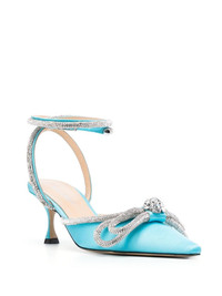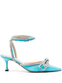 Double Bow 65mm pumps The Georgian footwear company MACH & MACH designs striking shapes for fashion-forward ensembles. The Double Bow pumps, which feature a pointed toe, are embellished with a bow appliqué at the front and shimmering crystals that capture the brand's outlandish character. Highlights - Sky blue - Calf leather - Crystal embellishment - Bow detailing - Pointed toe - Mid heel Composition Outer: Fabric 100%, Glass 100% Lining: Calf Leather 100% Sole: Calf Leather 100% SIZE & FIT Measurement HEEL 2.8 in(7 cm) HEIGHT 4.9 in(12.5 cm)