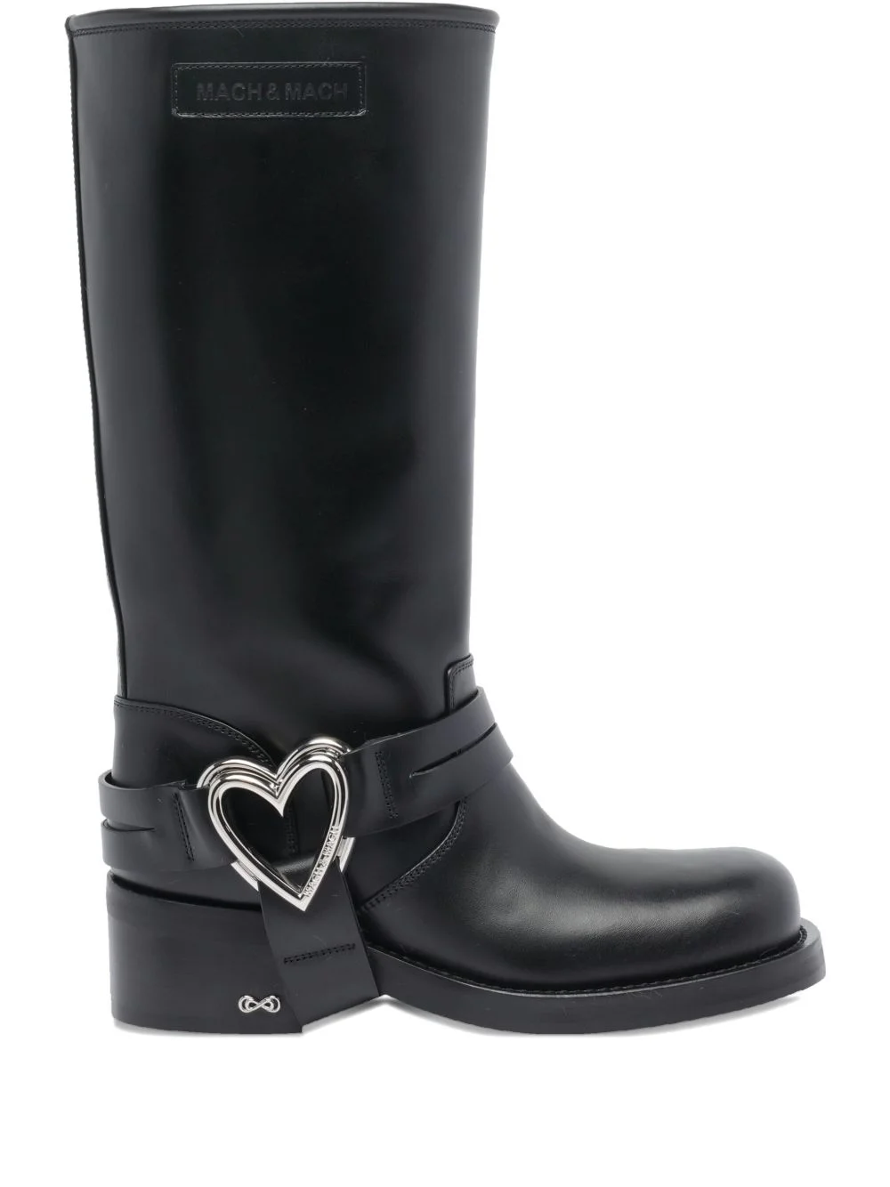 50mm Double Heart leather boots Highlights - Black - Calf leather - Heart-shaped buckle - Block heel - Rubber outsole Made in Italy Composition Sole: Calf Leather 100%, Rubber 100% Lining: Calf Leather 100% Outer: Calf Leather 100% SIZE & FIT Measurement HEEL 1.96 in(5 cm)