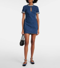 Embellished denim Mary Jane flats