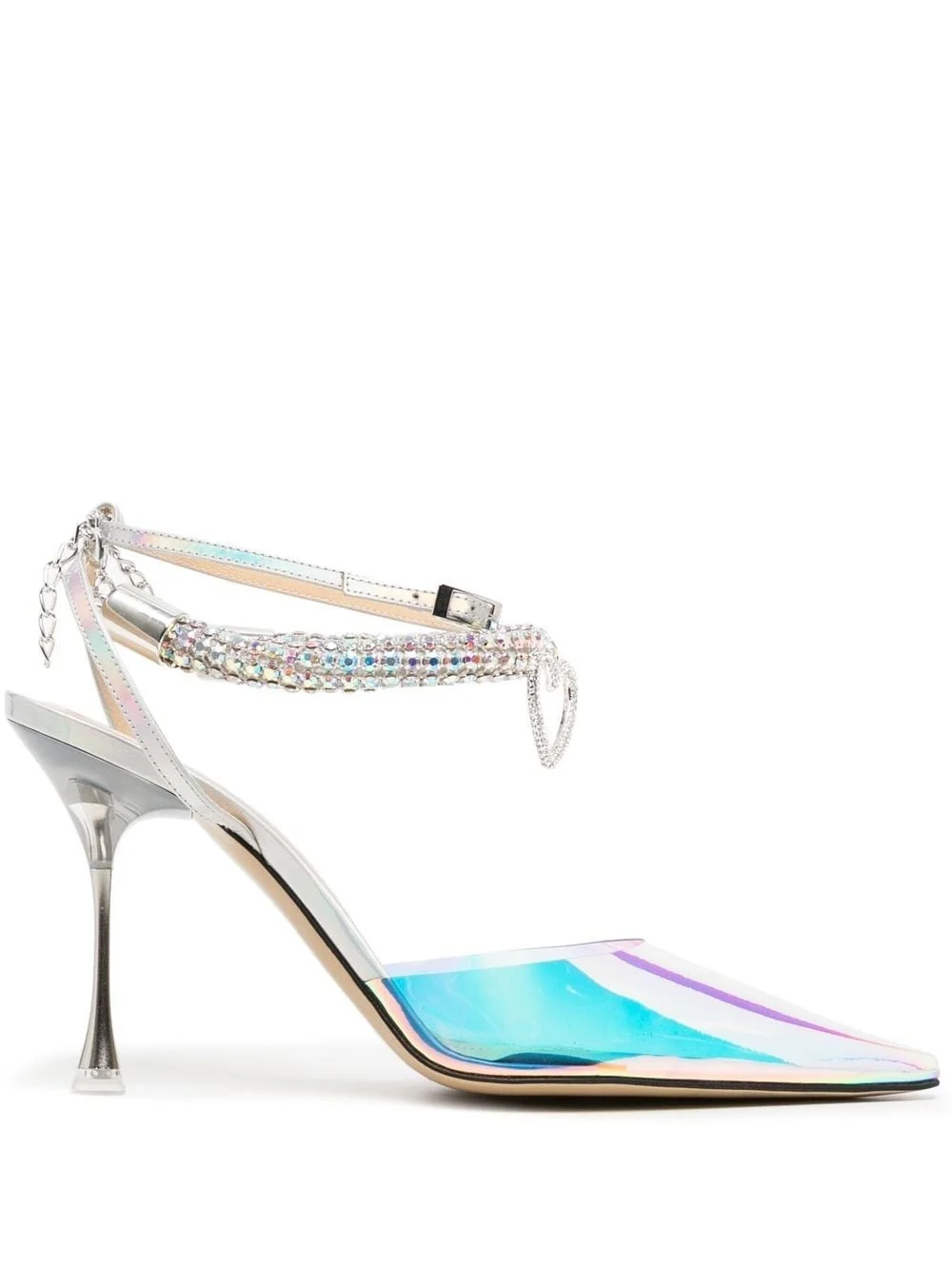 iridescent crystal-strap pumps Founded by sisters Nina and Gvantsa Macharashvili, MACH & MACH is renowned for bright colours and crystal embellishments, as seen with these pointed-toe pumps. The iridescent pair is finished with a crystal ankle strap. Made in Italy Composition Lining: Rubber 50%, Leather 50% Outer: Rubber 50%, Leather 50% Sole: Leather 100% SIZE & FIT Measurement HEEL 3.54 in(9 cm) Washing instructions Do Not Wash/Do Not Dry Clean