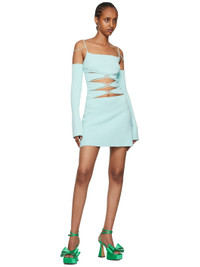 Satin heeled sandals in green. · Open square toe · Crystal-cut bow accent at vamp · Adjustable wraparound pin-buckle ankle strap · Logo stamp at padded footbed · Covered platform midsole · Covered block heel with rubber injection · Leather outsole · Platform: H1.25 in · Heels: H5 in Supplier color: Green Upper: textile. Sole: leather. Made in Italy 232404F125025