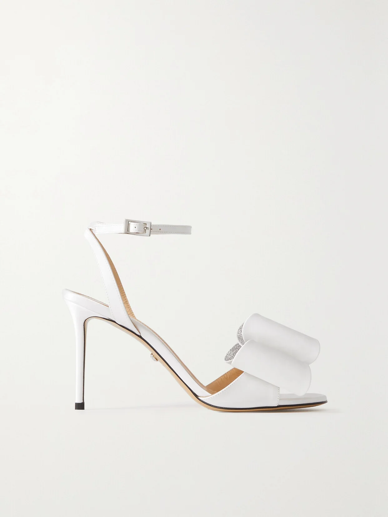 MACH & MACH's 'Le Cadeau' sandals are the perfect choice for an upcoming glamorous event. They're made from lustrous satin and detailed with voluminous bows that are underpinned with sparkling crystals. They have adjustable ankle straps and elegant round toes.