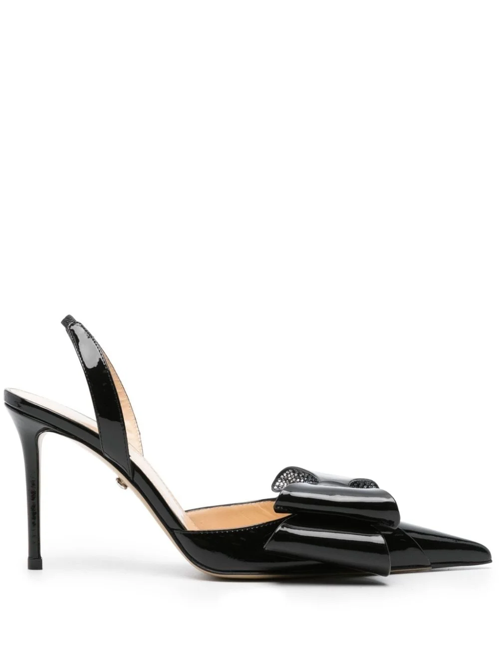 Le Cadeau 95mm slingback pumps French for ‘the present’, MACH & MACH’s Le Cadeau slingback pumps take their name from the double-layered bow at the toe strap, the inside of which is encrusted with crystals. They’re crafted from black patent leather to a sleek point-toe silhouette and elevated on a vertiginous stiletto heel. Highlights - Black - Calf leather - Patent finish - High stiletto heel - Pointed toe - Oversize bow detail - Crystal embellishment - Branded footbed - Leather outsole - Elasticated slingback strap - This piece comes complete with a protective dust bag. Made in Italy Composition Lining: Calf Leather 100% Sole: Calf Leather 100% Outer: Patent Calf Leather 100% SIZE & FIT Measurement HEEL 3.54 in(9 cm)