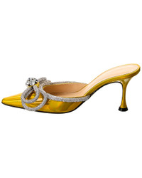 - Please note: Size selections are European. For US conversions, please reference size chart. - Made in Italy - Color/material: yellow iridescent leather - Design details: silver-tone hardware, crystal-embellished double bow - Lightly padded leather insole - Smooth leather sole - 3in heel - Please note: All measurements are approximate and were taken from a size 36; slight variations may occur.