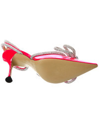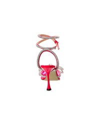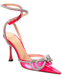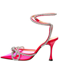 - Please note: Size selections are European. For US conversions, please reference size chart. - Made in Italy - Color/material: fluo pink leather and transparent vinyl - Design details: silver-tone hardware, crystal-embellished double bow - Adjustable ankle strap with buckle closure - Lightly padded leather insole - Smooth leather sole - 4in heel - Please note: All measurements are approximate and were taken from a size 36; slight variations may occur. - WARNING: - CA Residents - Prop 65
