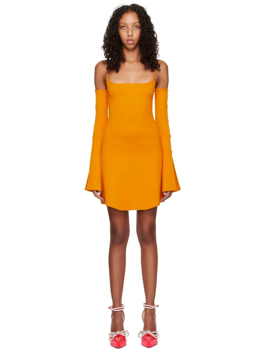 Rib knit viscose-blend dress. · Square neck · Fixed spaghetti shoulder straps · Cutouts at sleeves · Crystal-cut bow accents at sleeves · Extended flared cuffs Supplier color: Orange 70% viscose, 30% polyester. Made in Italy 231404F052014