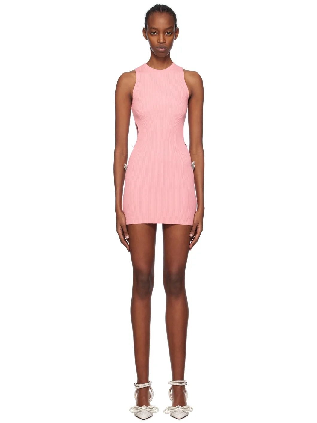 Rib knit viscose- and polyester-blend dress. · Crewneck · Cutouts and crystal-cut bow appliques at side seams · Unlined Supplier color: Pink 70% viscose, 30% polyester. Made in Italy 241404F052010