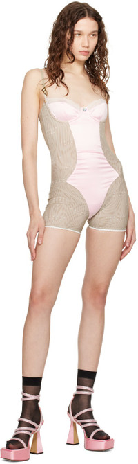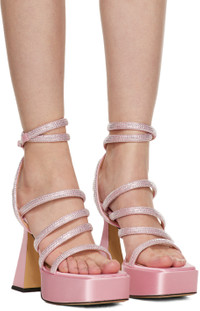 Silk satin heeled sandals in pink. Crystal-cut accents throughout. · Open square toe · Wraparound ankle strap · Covered platform midsole · Covered heel with rubber injection · Leather outsole in beige · Platform: H2 in · Heel: H5 in Supplier color: Sydney pink