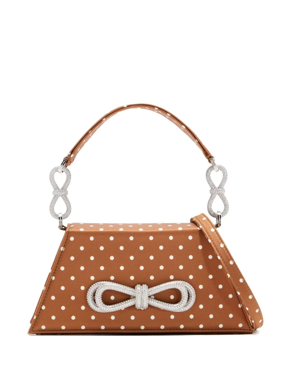Samantha crystal-embellished satchel Highlights - Light brown - Polka dot pattern - Crystal-embellished bow - Top handle - Detachable shoulder strap Made in Italy Composition Outer: Satin 100% Lining: Fabric 100% SIZE & FIT Measurement DEPTH 2.28 in(5.8 cm) HEIGHT 4.48 in(11.4 cm) WIDTH 9.4 in(23.9 cm)