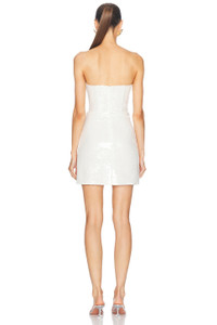 Details - Self: 100% polyester - Lining: 95% polyester, 5% elastane - Made in Italy - Machine wash - Fully lined - Hidden back zipper closure - Boned design at bodice - Cinched waist silhouette - Sequin embellished fabric - Our Style No. MCHF-WD22 - Manufacturer Style No. PF24-CD201-PZ07-WHT
