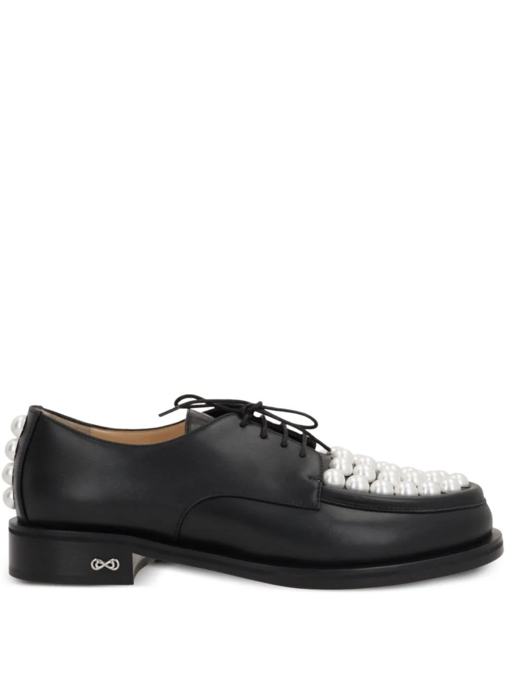 Sirene lace-up shoes Highlights - Black - Calf leather - Front lace-up fastening - Low stacked heel - Faux-pearl detailing - Round toe - Branded leather insole - Leather sole Made in Italy Composition Lining: Calf Leather 100% Sole: Calf Leather 100% Outer: CALFSKIN 100%, Faux Pearl 100%