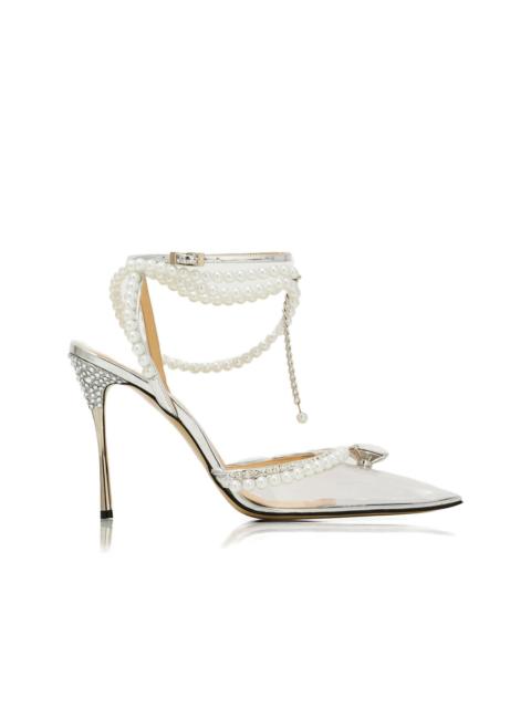 Double Bow 115mm satin pumps One of Mach & Mach's signature designs, these pumps are instantly recognisable thanks to the crystal-embellished double bow detail at the toe. The accent adds an extra glimmering touch to the pair, which is crafted in lustrous white silk satin. Made in Italy Composition Outer: Silk Satin 100% Lining: Leather 100% Sole: Leather 100% SIZE & FIT Measurement HEEL 4.52 in(11.5 cm) Sole height 0.39 in(1 cm)