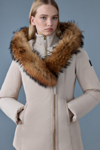 ADALI is a recycled down coat for women featuring our Signature Collar with natural fur trim and an asymmetrical zip closure. Lab tested to protect with weight-to-protection ratio, it has an inner bib with rib collar, hidden hood toggle, and storm cuffs. Water resistant, repellent, and windproof, insulated leather welt pockets add warmth and protection. A design-forward winter essential elevated with thoughtful tailoring. - Longline down coat - 800 fill power - Traceable duck down - Deep Cold: Down to -20°C - Signature Collar with finland raccoon fur - Windproof shell - 3-layer New Tech fabric with membrane - Water resistant and repellent - Insulated pockets - Storm cuffs - Asymmetrical zipper front closure - Hidden toggle at hood opening - Inside pocket - Leather welt pockets with zippers - Signature hood - Inner bib with rib collar - Fitted silhouette SIZE & FIT - FITTED – Our signature fit, closest to the body. - Designed to be worn with light layers, all while keeping you warm. - For heavier layering, we recommend sizing up. - Coat length from shoulder to hem: 27'' / 68.58 cm. COMPOSITION & CARE INSTRUCTIONS - Shell : 100% polyester. Combo 100% cow leather. Lining: 100% polyester. Filling: 90% duck down, 10% feathers. Fur: 100% finland raccoon. Water-repellent & water-resistant. - Dry clean by leather specialist using oil based solvent only. Do not use perchloroethylene.