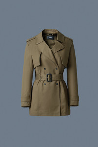 ADVA is a mid-length trench coat crafted from cotton-blend twill. Wide notched lapel, epaulette shoulders, and rainshedder add classic styling throughout. The mid-length semi-fitted silhouette is structured by a removable belt and pleated peplum. A luxe piece with classic style. - Mid-length twill trench coat - Double-breasted snap closure - Wide notched lapel - Rainshedder at front and back - Removable buckle belt - Pleated peplum - Adjustable sleeve tabs with snaps - Epaulette shoulders - Hidden pocket under pleats - Water-repellent, resistant, and windproof - Partially lined - Semi-Fitted SIZE & FIT - SEMI-FITTED – Follows your body’s shape with ease. - Designed to be worn with light layers. - The model is 5'11" (180 cm) and wears a size XS. - Length from shoulder to hem: 29'' / 74 cm. COMPOSITION & CARE INSTRUCTIONS - Shell: 68% polyester, 32% cotton. Water-repellent & water-resistant. - Dry clean by leather specialist using oil based solvent only. Do not use perchloroethylene.