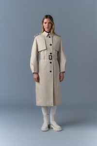ALIA is a long straight-fit trench coat crafted from cotton-blend twill. Shoulder epaulettes and balloon sleeves mix classic and modern styles while detachable throat latch and buckled belt trap in the warmth. Timeless elegance meets contemporary practicality. - Long twill trench coat - Single-breasted button closure - Spread collar - Detachable throat latch - Vented rainshedder at front and back - Removable buckle belt - Adjustable sleeve tabs with snaps - Vent opening with button at back - Epaulette shoulders - Water-repellent, resistant, and windproof - Machine washable - Partially lined - Straight-fit SIZE & FIT - STRAIGHT – Classic fit allowing comfort and style. - Designed to be worn with heavier layers. - The model is 5'11" (180 cm) and wears a size XS. - Length from shoulder to hem: 46 ½'' / 118 cm. COMPOSITION & CARE INSTRUCTIONS - Shell: 68% polyester, 32% cotton. Lining: 100% cotton. Water-repellent & water-resistant. - Dry clean by leather specialist using oil based solvent only. Do not use perchloroethylene.