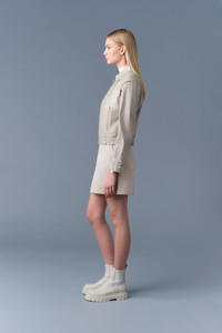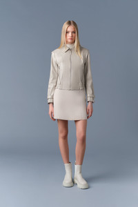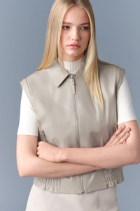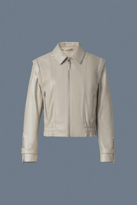 AMOREE is a leather jacket with detachable sleeves for alternative styling. Tailored to a regular fit, it features zip sleeve vents with gussets and an elasticized bottom hem. Leather storm placket and under-arm eyelet ventilation provide versatile seasonal wear. A modern and modular statement layer. - Panelled leather jacket - Detachable sleeves for alternate styling - Adjustable sleeve tabs with snaps - Zip sleeve vents with gusset - Elasticized bottom hem - Center front zipper closure - Leather storm placket - Waist pockets with zippers - Inside pocket - Under-arm eyelets for ventilation - Windproof SIZE & FIT - REGULAR – Classic fit allowing comfort and style. - Designed to be worn with heavier layers. - The model is 5'11" (180 cm) and wears a size XS. - Length from shoulder to hem: 20 ½'' / 52 cm. COMPOSITION & CARE INSTRUCTIONS - Shell: 100% lamb leather. Lining: 100% polyester. - Dry clean by leather specialist using oil based solvent only. Do not use perchloroethylene.
