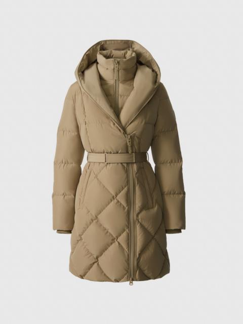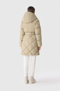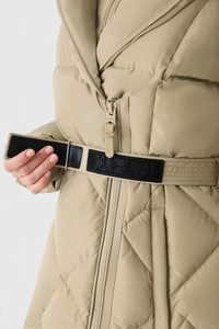 AYUMI is a 2-in-1 long down coat crafted from recycled materials and filled with GRS-certified down. Featuring a removable inner bib in lightweight down, the design offers customizable protection in extreme cold. Diamond quilting at lower body with an adjustable belt, and a dramatic wrap-style collar blend form and function. A hidden toggle at the hood opening, rib knit storm cuffs, and welt zip pockets complete this refined cold-weather essential. DETAILS - 2-in-1 long belted down coat - Water-resistant, repellent, and windproof - GRS-certified recycled down - Removable lightweight down bib - Diamond quilting at lower body - Channel quilting throughout - Asymmetrical front zip closure - Adjustable belt at waist - Insulated waist pockets with zipper opening - Inner welt pocket with zipper - Rib knit storm cuffs - Hidden toggle at hood - Fully insulated - Temperature Rating: -20°C SIZE & FIT - FITTED – Our signature fit, closest to the body. - Designed to be worn with light layers, all while keeping you warm. - For heavier layering, we recommend sizing up. - The model is 5'11" (180 cm) and wears a size S. - Coat length from shoulder to hem: 35.25'' / 90 cm. COMPOSITION & CARE - Shell: 100% recycled polyester. Lining: 100% recycled polyester. Filling: 90% recycled down, 10% recycled feathers. Water-repellent, water-resistant. - Close zippers. Remove fur. Remove all removable trims. Wash inside out. Wash in domestic machine in water not exceeding 40°C, at normal setting. use mild detergent. Remove immediately after washing. Do not soak. Tumble dry low heat with tennis balls, until fully dried (1 to 3 hours). Do not wet-clean. Do not bleach. Do not wring. Do not iron or press. Dry clean using oil based solvent only. Do not use perchloroethylene.