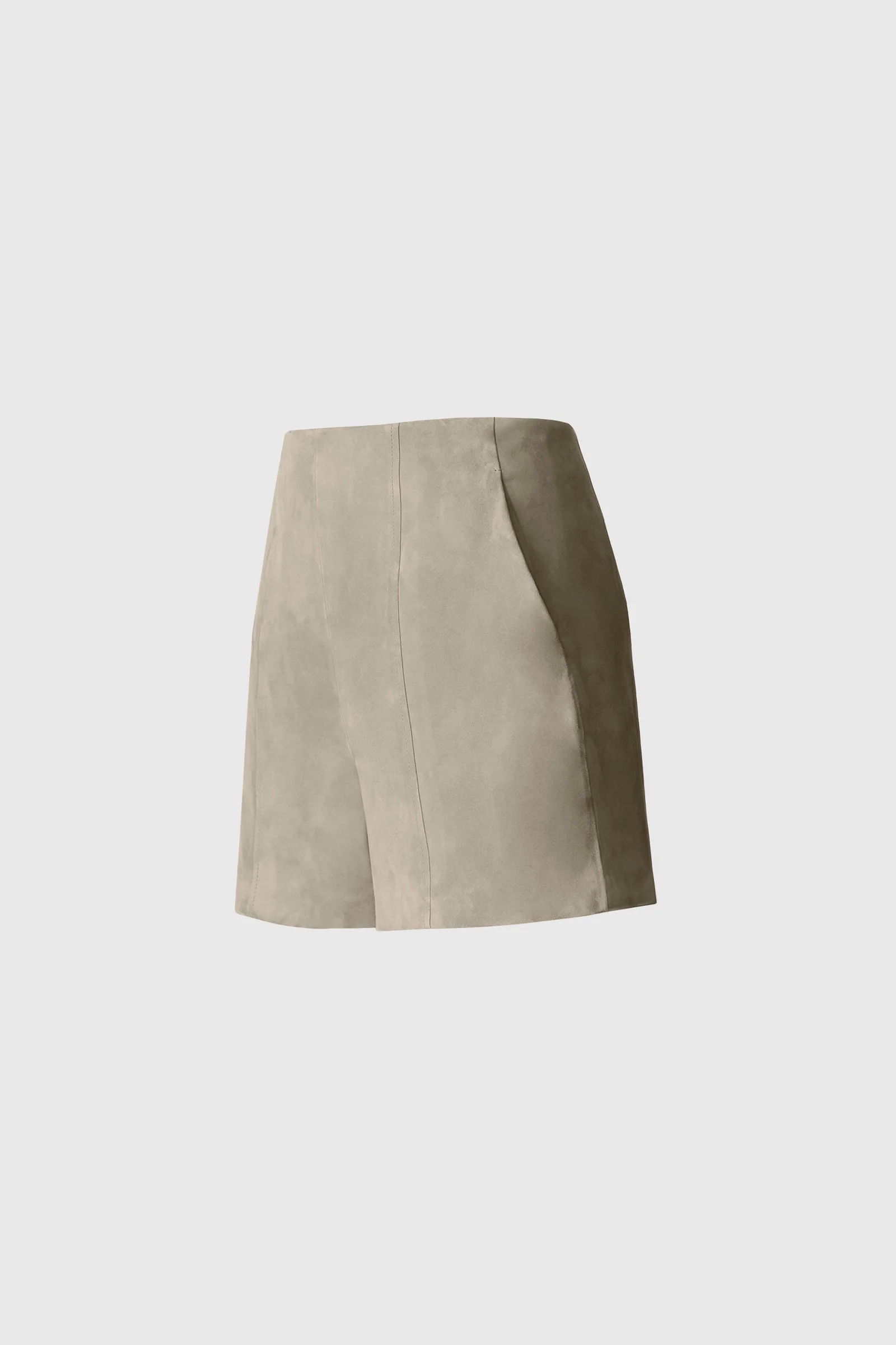 DAVA-SU are slim-fit shorts crafted from suede for a soft, refined texture. Tailored with front seams for structure and shape, it features slash pockets and a clean silhouette that elevates casual styling. The invisible zipper at the back ensures a seamless finish, while full lining provides comfort and durability. DETAILS - Suede shorts - Slash pockets - Center back closure with invisible zipper - Fully lined - Slim fit SIZE & FIT - SLIM – Our signature fit, closest to the body. - Designed to be worn with light layers, all while keeping you warm. - The model is 5'11" (180 cm) and wears a size 2. - Inseam: 3.5'' / 9 cm. COMPOSITION & CARE - Shell: 100% suede. Lining: 100% viscose - Dry clean by leather specialist using oil based solvent only. Do not use perchloroethylene