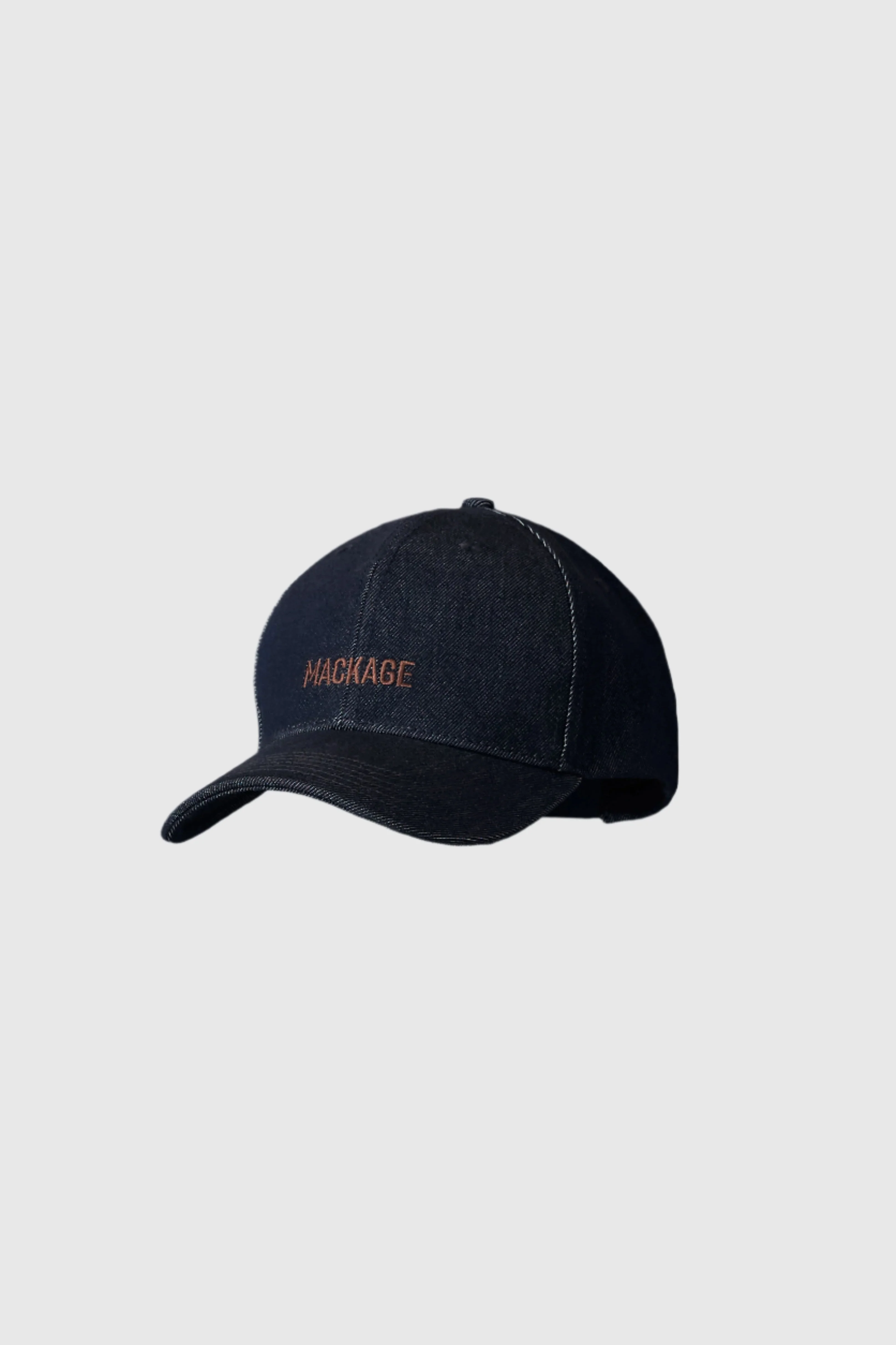 ANDERSON-DNM is a classic baseball cap constructed from organic cotton denim. A logo patch defines the front panel while the multistitch curved visor adds timeless detail. An elevated accessory for the nomadic city explorer. DETAILS - Classic baseball cap silhouette - Organic cotton denim - MACKAGE embroidery - Embroidered eyelets for ventilation - Adjustable buckle slider closure COMPOSITION & CARE - Shell: 100% organic cotton. Lining: 100% cotton.