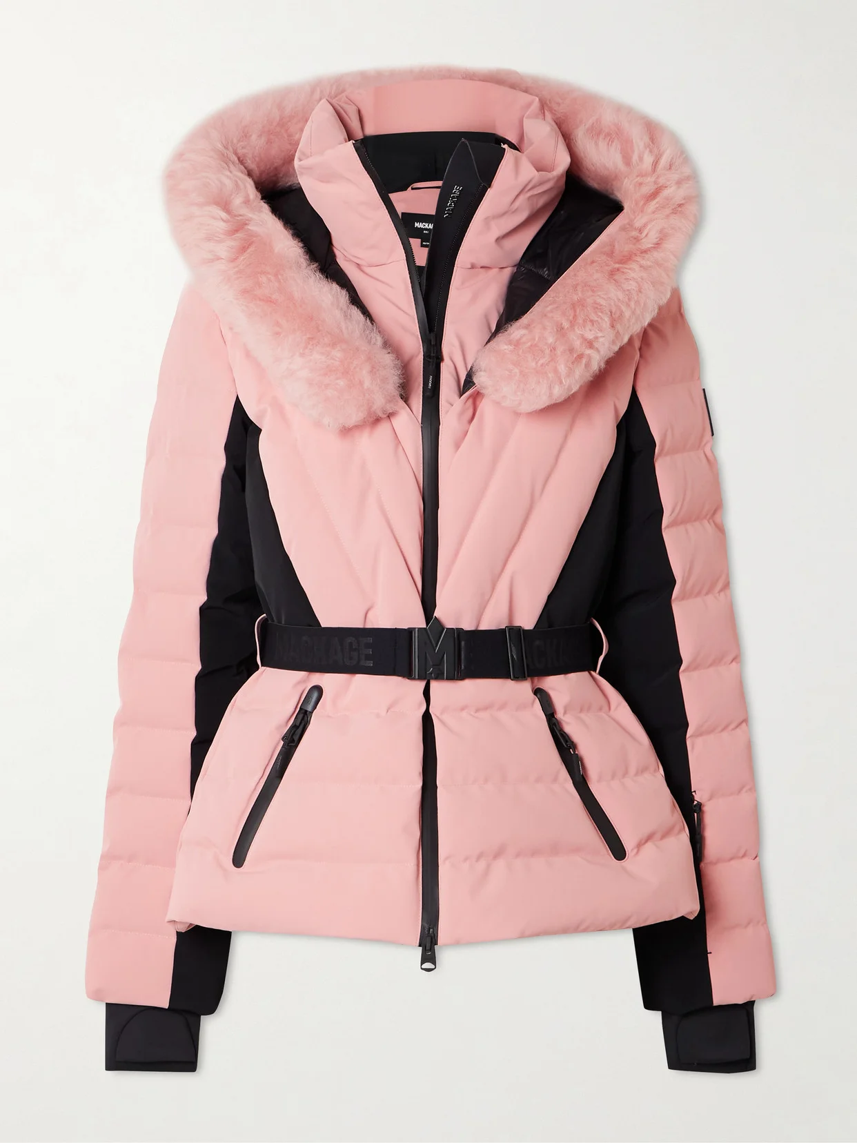 Designed to keep you warm and dry on the slopes, Mackage's 'Elita' ski jacket is made from water-repellent shell and padded with Primaloft® Gold Series insulation as well as certified down. It has a funnel neck fitted with a hood, a removable powder skirt and thumbholes at the cuffs to keep the sleeves securely in place. Cinch your waist using the buckled belt.