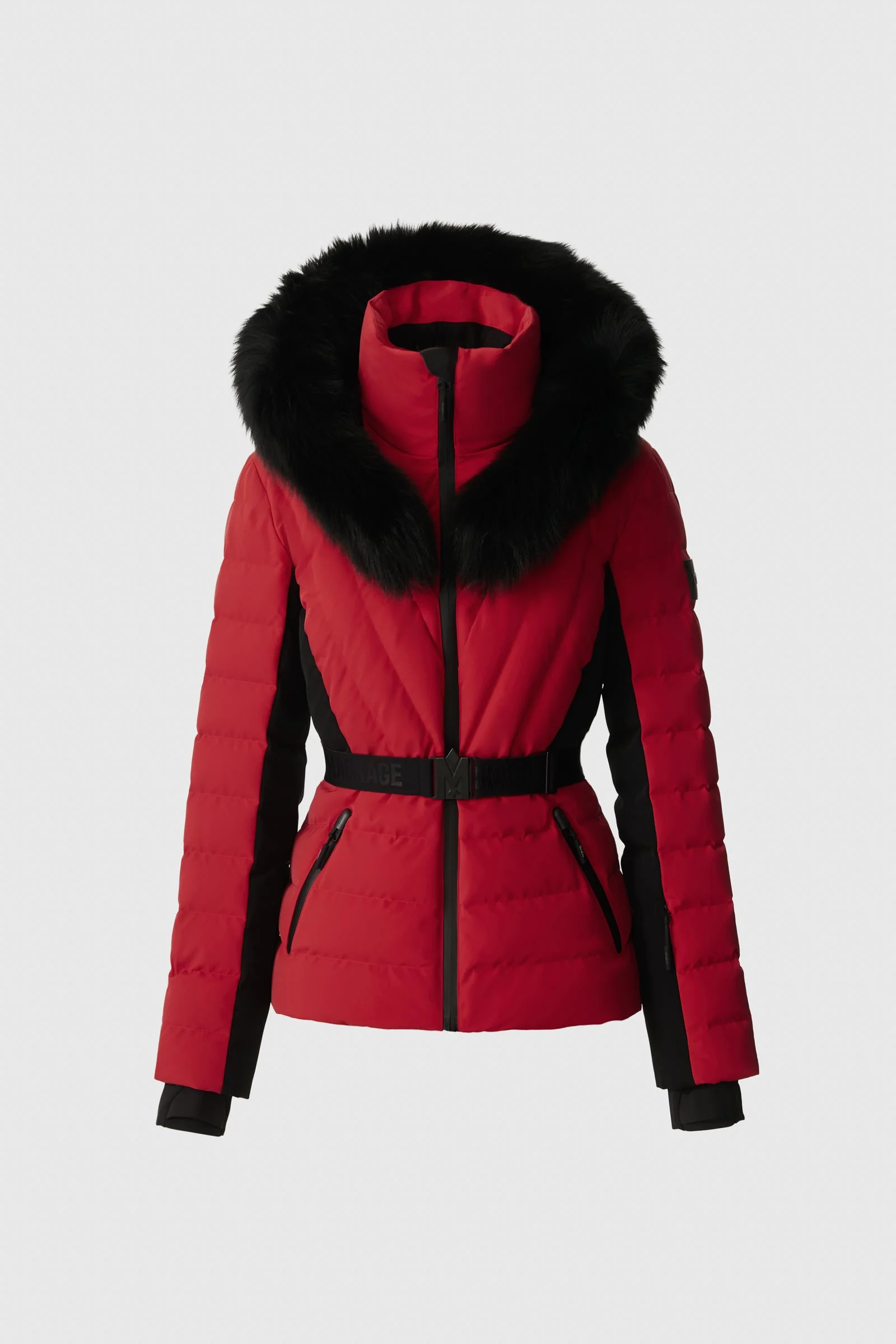 ELITA-ZR by MACKAGE is a fitted down ski jacket with Primaloft® Gold Series insulation and two-way stretch for ease of movement. Water-repellent, windproof and breathable, ELITA features a removable hood and blue fox fur trim, an elastic buckled belt, a removable powder skirt and an adjustable hem, along with an array of functional details designed to keep you warm and comfortable in the snow. DETAILS - Storm placket - Zipper pockets - Removable hood and blue fox fur trim - Elastic belt with buckle - Invisible sleeve pocket - Inner pockets and inner cord loop - Goggle cleaner and key holder - Removable powder skirt and adjustable hem - Fleece-lined inner collar and pockets - Underarm vent - Storm cuffs with thumb loops - Primaloft® Gold Series insulation and Nano duck down with 800+ fill power - YKK Metaluxe zippers - Waterproof rating up to 20,000mm - Breathability rating 10,000 g/m2 24 hr SIZE & FIT - FITTED – Our signature fit, closest to the body. - Designed to be worn with light layers, all while keeping you warm. - For heavier layering, we recommend sizing up. - Coat length from shoulder to hem: 24" / 61 cm COMPOSITION & CARE - Shell: 84% polyamide/nylon, 16% elastane/spandex. Lining: 100% polyamide/nylon. Filling: 90% down, 10% feathers. Filling: 100% polyester. Fur: 100% fox. Water-resistant & water-repellent. - Close zippers. Remove fur. Remove leather zipper puller. Wash inside out. Wash in domestic or commercial machine in water not exceeding 40°c, at normal setting.