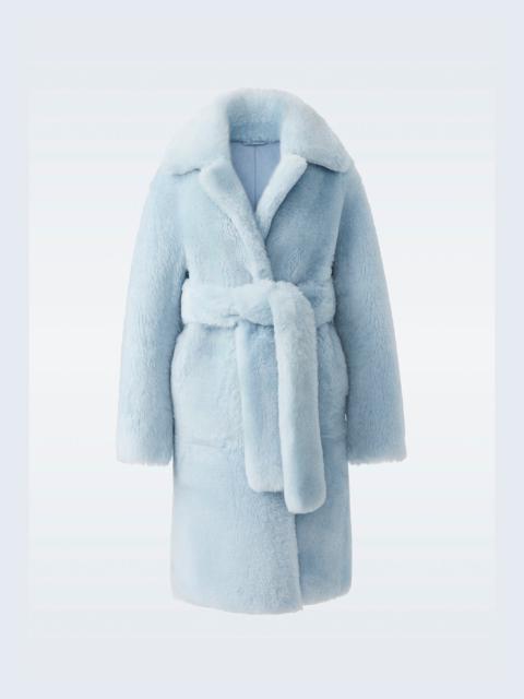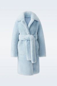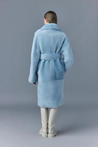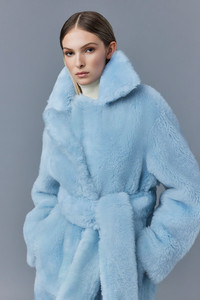 ETIENNE is a reversible double-breasted coat for women crafted from incredibly soft shearling. The peaked lapel, dropped shoulders, and sash belt bring dimensionality to the relaxed silhouette. A cozy and striking sartorial solution to cold weather. - Long shearling coat - Double-breasted closure with hidden snaps - Reversible style - Tonal sash belt - Fend off extreme cold: protection down to -20ºC - Dropped shoulders - Oversize fit—size down for more traditional fit - Made in Türkiye SIZE & FIT - OVERSIZED – Casual and cool fit for layering. - Designed to be worn with heavy layers or alone for an edgy look. - For a more fitted look or for petite customers, we recommend to size down. - The model is 5'11" (180 cm) and wears a size XS. - Length from shoulder to hem: 41'' / 104 cm. COMPOSITION & CARE INSTRUCTIONS - Shell: 100% lamb leather. - Dry clean by leather specialist using oil-based solvent only. Do not use perchloroethylene. This garment is a luxury item made of genuine sheepskin. The fine skins used to make this garment have been treated and conditioned. Skins may present slight variations in colour, which is not a defect, but a natural characteristic. -Slight transfer of colour may occur when being worn for the first few times. Great care should be taken when wearing and handling. -Garment should be dry cleaned by a leather specialist only, with all closures and trims closed or removed. -Garment must be stored in the original garment bag, never in plastic polybag. -Use proper size hanger to maintain the shape of the coat. -Prevent the humidity since it is natural shearling. With humidity, appearance might affected. -Exposure to rain should be avoided; water may cause staining and may affect the texture of the sheepskin. -If exposed to rain, let it dry in cool ventilated area, away from any heat source and direct sunlight. -Do not steam shearling, but use fur brush if needed.