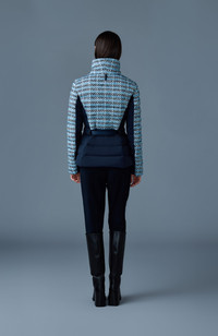 EVITA-TW is a quilted-down jacket crafted from multicolor tweed shell and Agile 360 fabric. Tailored to a fitted silhouette, it features a stand collar and an adjustable buckled belt. A standout novelty piece built for superior warmth and technical comfort. - Mixed media multicolor tweed jacket - Agile 360 stretch shell - 750+ fill power - Traceable duck down - Zipper pockets at waist - Adjustable belt with buckle - Inner zipper pocket - Center front zipper closure - Fitted cut - Down to -10°C SIZE & FIT - FITTED – Our signature fit, closest to the body. - Designed to be worn with light layers, all while keeping you warm. - For heavier layering, we recommend sizing up. - The model is 5'11" (180 cm) and wears a size XS. - Coat length from shoulder to hem: 25'' / 64 cm. COMPOSITION & CARE INSTRUCTIONS - Shell: 45% cotton, 19% polyester, 18% acrylic, 12% polyamide/nylon, 3% metallic, 2% rayon. Combo shell:82% recycled nylon, 18% elastane/spandex. Lining: 82% recycled nylon, 18% elastane/spandex. Filling: 90% duck down, 10% feathers. - Dry clean by leather specialist using oil-based solvent only. Do not use perchloroethylene.