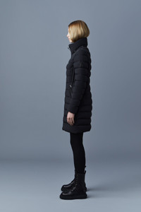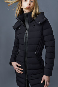 FARREN is a semi-fitted light jacket coat for women made from our proprietary Agile 360 stretch shell. Engineered for protective performance, it is water resistant and repellent, and delivers cold protection down to -10°C. Cinch the drawcord storm visor for enhanced protection. A high-performance staple with utilitarian comfort. - Longline down coat - Stretch light weight down - Moderate Cold: Down to -10°C - AGILE-360 2-way stretch - Storm visor with drawcord - Removable hood - Center front zipper closure with leather tape - Insulated pockets - Water resistant and repellent - Semi-fitted silhouette SIZE & FIT - SEMI-FITTED – Follows your body’s shape with ease. - Designed to layer with a fitted top or light sweater. - Coat length from shoulder to hem: 34.5'' / 87.63 cm. COMPOSITION & CARE INSTRUCTIONS - Shell (Woven): 82% polyamide/nylon, 18% elastane/spandex. Lining: 82% polyamide/nylon, 18% elastane/spandex. Filling: 90% chinese pure white goose down, 10% feathers. Water-repellent & water-resistant. - Dry clean by leather specialist using oil based solvent only. Do not use perchloroethylene.