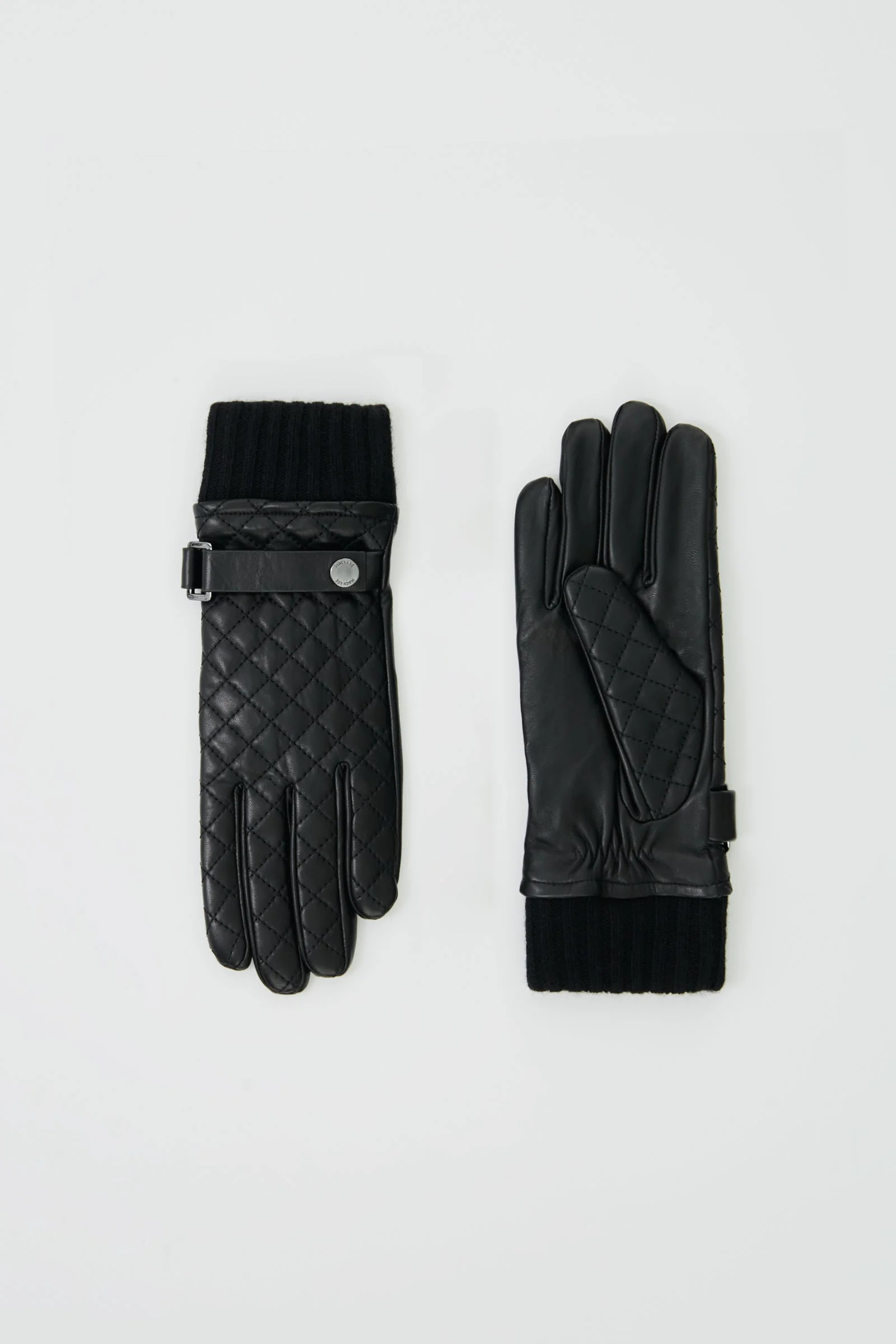 FIA-Q is a diamond-quilted driving glove crafted from premium leather. It features an adjustable wrist tab detailed with a sleek silver chevron clasp. Touchscreen capable, the snug rib knit cuff lends a perfect fit. Impeccably tailored with a soft lining and elastic insert. A timeless cold weather staple with a luxe feel. DETAILS - Diamond quilted leather driving gloves - Ultra supple leather lambskin - Lambskin wrist tab with silver loop adjuster and chevron clasp - Soft rib knit cuffs - Elastic cuff insert - Soft lining for warmth and comfort - Touchscreen capable thumb and index COMPOSITION & CARE - Shell: 100% lamb leather. Lining: 70% virgin wool, 30% cashmere. Water-repellent, water-resistant.