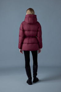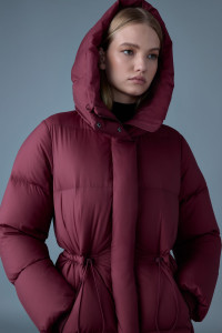 FREYA-SW is a quilted down jacket made from a light softwash crinkle material for a matted finish. Adjustable bungee at waist defines the relaxed fit. Water resistant and repellent, it features an adjustable hood and a pillow collar, fully lined for extra warmth. A bold winter layer with utilitarian comfort - Quilted down softwash crinkle jacket - 750+ fill power - Traceable duck down - Centre front zipper closure and placket with hidden saps - Hood with drawcord-adjustable visor - Pillow collar for extra comfort - Insulated zip pockets at waist - Tunnel with adjustable drawcord at waist - Inside zippered pocket - Water resistant and repellent - "M" Tonal silicone patch at left sleeve - Relaxed fit - Down to -15°C SIZE & FIT - RELAXED – Loose fit for on the go comfort. - Designed to be worn with heavier layers. - The model is 5'11" (180 cm) and wears a size XS. - Coat length from shoulder to hem: 29.5'' / 75 cm. COMPOSITION & CARE INSTRUCTIONS - Shell: 100% polyamide/nylon. Lining: 100% recycled nylon. Filling: 90% duck down, 10% feathers. Water-repellent and water-resistant. - Dry clean by leather specialist using oil-based solvent only. Do not use perchloroethylene.