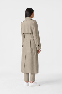 GAEL-SU is a double-breasted trench coat crafted from premium-grained suede. The wide notched lapel, button collar latch, and asymmetrical rain shed bring striking lines to the flowing silhouette. The relaxed fit is defined by a removable sash belt and adjustable sleeve tabs while welt waist pockets, epaulettes, and painted edges show subtle yet elevated tailoring. A timeless piece with modern flair, perfect for layering through the season. DETAILS - Maxi suede trench coat - Double-breasted button closure - Wide notched lapel collar - Detachable throat latch with buttons - Left-sided rain shedder - Removable sash belt - Adjustable sleeve tabs with buttons - Welt waist pockets - Vent at center back - Epaulette shoulders - Fully lined - Edge painted detailing - Relaxed fit SIZE & FIT - RELAXED – Loose fit for on the go comfort. - Designed to be worn with heavier layers. - The model is 5'11" (180 cm) and wears a size S. - Coat length from shoulder to hem: 47.5'' / 121 cm. COMPOSITION & CARE - Shell: 100% suede. Lining: 100% viscose - Dry clean by leather specialist using oil based solvent only. Do not use perchloroethylene