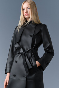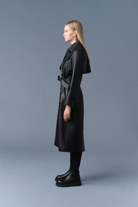 GAEL-V is a double-breasted trench coat crafted from premium-grained leather. The wide notched lapel, button collar latch, and asymmetrical rain shed bring striking lines to the flowing silhouette. The relaxed fit is defined by a removable sash belt and adjustable sleeve tabs while welt waist pockets, epaulettes, and painted edges show subtle yet elevated tailoring. A timeless piece with modern flair, perfect for layering through the season. DETAILS - Maxi leather trench coat - Double-breasted button closure - Wide notched lapel collar - Detachable throat latch with buttons - Left-sided rain shedder - Removable sash belt - Adjustable sleeve tabs with buttons - Welt waist pockets - Vent at center back - Epaulette shoulders - Fully lined - Edge painted detailing - Relaxed fit SIZE & FIT - RELAXED – Loose fit for on the go comfort. - Designed to be worn with heavier layers. - The model is 5'11" (180 cm) and wears a size XS. - Length from shoulder to hem: 47 ½'' / 121 cm. COMPOSITION & CARE - Shell: 100% lamb leather. Lining: 100% viscose. - Dry clean by leather specialist using oil based solvent only. Do not use perchloroethylene.