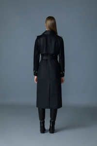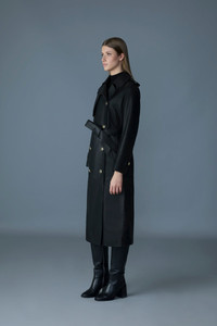 GAEL-V is a double-breasted trench coat crafted from premium-grained leather. The wide notched lapel, button collar latch, and asymmetrical rain shed bring striking lines to the flowing silhouette. The relaxed fit is defined by a removable sash belt and adjustable sleeve tabs while welt waist pockets, epaulettes, and painted edges show subtle yet elevated tailoring. A timeless piece with modern flair, perfect for layering through the season. DETAILS - Maxi leather trench coat - Double-breasted button closure - Wide notched lapel collar - Detachable throat latch with buttons - Left-sided rain shedder - Removable sash belt - Adjustable sleeve tabs with buttons - Welt waist pockets - Vent at center back - Epaulette shoulders - Fully lined - Edge painted detailing - Relaxed fit SIZE & FIT - RELAXED – Loose fit for on the go comfort. - Designed to be worn with heavier layers. - The model is 5'11" (180 cm) and wears a size XS. - Length from shoulder to hem: 47 ½'' / 121 cm. COMPOSITION & CARE - Shell: 100% lamb leather. Lining: 100% viscose. - Dry clean by leather specialist using oil based solvent only. Do not use perchloroethylene.