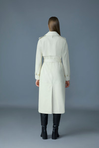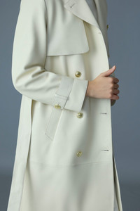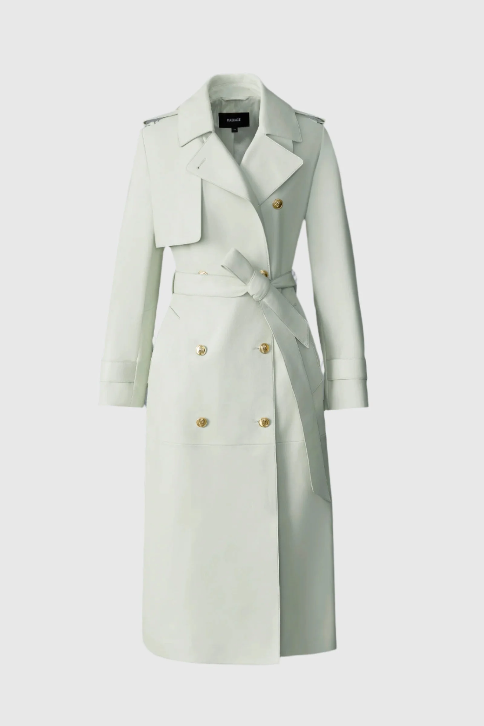 GAEL-V is a double-breasted trench coat crafted from premium-grained leather. The wide notched lapel, button collar latch, and asymmetrical rain shed bring striking lines to the flowing silhouette. The relaxed fit is defined by a removable sash belt and adjustable sleeve tabs while welt waist pockets, epaulettes, and painted edges show subtle yet elevated tailoring. A timeless piece with modern flair, perfect for layering through the season. DETAILS - Maxi leather trench coat - Double-breasted button closure - Wide notched lapel collar - Detachable throat latch with buttons - Left-sided rain shedder - Removable sash belt - Adjustable sleeve tabs with buttons - Welt waist pockets - Vent at center back - Epaulette shoulders - Fully lined - Edge painted detailing - Relaxed fit SIZE & FIT - RELAXED – Loose fit for on the go comfort. - Designed to be worn with heavier layers. - The model is 5'11" (180 cm) and wears a size XS. - Length from shoulder to hem: 47 ½'' / 121 cm. COMPOSITION & CARE - Shell: 100% lamb leather. Lining: 100% viscose. - Dry clean by leather specialist using oil based solvent only. Do not use perchloroethylene.
