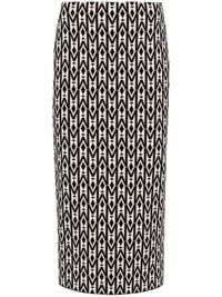 geometric-pattern knitted skirt Highlights - Black/light beige/ivory white - Knitted construction - All-over geometric-pattern print - Pencil silhouette - Unlined - Straight hem - Concealed side zip fastening Imported Composition Viscose 70%, Polyester 30% SIZE & FIT Model measurements Height 5 ft 10 in(1.77 m) Bust/Chest 33.07 in(84 cm) Hips 37 in(94 cm) Waist 24.8 in(63 cm) FittingInformation This midi-length skirt is intended to be worn high on the waist Made with a midweight knit, this piece offers some stretch This piece fits true to size – take your usual size