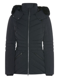 hooded jacket Highlights - Black - Fur trim - Quilted - Zip fastening - Side zip pockets - Ribbed panels Imported Composition Outer: Recycled Nylon 82%, Spandex/Elastane 18% Lining: Recycled Nylon 82%, Spandex/Elastane 18% Recycled Down 90%, Recycled Feather 10% Washing instructions Dry Clean Only