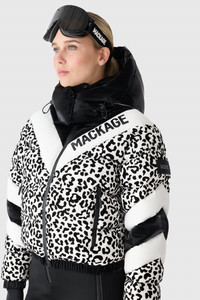 KAIRI-FLP is a recycled down ski jacket featuring chevron inserts at the sleeve and yoke. Mixed-media styling throughout, high gloss finish details the hood and sleeves while the novelty flocking adorns the body and sleeves. Removable hood, powder skirt, and elasticized cuffs offer adaptive features for cold mornings and warmer afternoons. Elevated by unique contrast textures, it blends standout design with slope-tested functionality. DETAILS - Recycled down ski jacket - Temperature Rating: -15°C - Novelty flocking fabric and high gloss finish detailing throughout - Detachable hood and snow skirt - Water-resistant front and pocket zippers - Storm cuffs with thumb loops - Elasticized cuffs and bottom hem - Hidden zipper at sleeve - Branded inner storm placket - Silicone l0go ski patch at left arm - Oversized fit SIZE & FIT - OVERSIZED – Casual and cool fit for layering. - Designed to be worn with heavy layers or alone for an edgy look. - For a more fitted look or for petite customers, we recommend to size down. - The model is 5'11" (180 cm) and wears a size S. - Coat length from shoulder to hem: 23'' / 80 cm. COMPOSITION & CARE - Shell: 100% recycled polyester. Lining: 100% recycled nylon. Filling: 90% down, 10% feathers. Water-repellent, water-resistant. - Close zippers. Remove fur. Remove all removable trims. Wash in domestic machine in water not exceeding 30°C at delicate gentle setting. Wash inside out. Use mild detergent. Remove immediately after washing. Do not soak. Tumble dry at low heat with tennis balls until fully dried (1 to 3 hours). Do not wet-clean. Do not bleach. Do not wring. Do not iron or press. Do not steam. Do not dry clean.