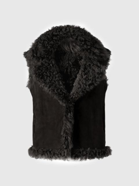 KASIA is a reversible shearling leather vest with a plush texture on the fur-side. Designed for versatility and effortless layering, it features a center front hook-and-eye closure and side seam pockets that reverse with the garment. Its unlined construction enhances drape and comfort. DETAILS - Reversible shearling leather vest - Center front closure with hook and eye - Reversible pocket at side seam - Unlined SIZE & FIT - REGULAR – Classic fit allowing comfort and style. - Designed to be worn with heavier layers. - The model is 5'11" (180 cm) and wears a size S. - Coat length from shoulder to hem: 22.5'' / 62 cm. COMPOSITION & CARE - Shell: 100% lamb leather. - Dry clean by leather specialist using oil based solvent only. Do not use perchloroethylene.