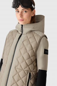 KATLA is a 3-in-1 modular ski jacket featuring a seam-sealed matte inner shell and a removable outer down-filled vest. Crafted from high-performance recycled materials, it features diamond quilting, contrast textures, and reflective for a standout alpine style. Wear the technical shell alone for warmer, high participation days or add the vest for cooler temperatures. A high-technical performance assembly with effortless modularity. DETAILS - 3-in-1 technical ski jacket with removable down vest - Temperature rating: -5°C - Machine washable - Regular fit - Seam-sealed recycled matte shell - Water-resistant, repellent, and windproof - Adjustable storm visor hood with bungee cord - Active storm cuffs with thumbhole opening - Zip ski pass pocket at sleeve - Insulated zip pockets and inner welt pocket - Reflective Mackage logos at chest and sleeve - Silicone logo ski patch at left sleeve - Silicone logo sleeve tabs - Logo branded inside storm placket - Diamond quilted construction with contrast texture - Responsibly-sourced down - Zippered welt waist pockets - Adjustable bungee at inner waist SIZE & FIT - REGULAR – Classic fit allowing comfort and style. - Designed to be worn with heavier layers. - The model is 5'11" (180 cm) and wears a size S. - Coat length from shoulder to hem: 25.5'' / 75 cm. COMPOSITION & CARE - Shell: 100% polyester. Lining: 100% recycled nylon. Filling: 90% down, 10% feathers. Water-repellent, water-resistant. - Inner jacket: Wash in domestic or commercial machine in water not exceeding 30°C at normal setting. Wash inside out. Use mild detergent. Wash with similar colors. Remove immediately after washing. Do not tumble dry. Iron with or without steam by hand, or press on commercial equipment, at low temperature (not exceeding 110°C). Do not bleach. Do not dry clean. - Outer jacket: Dry clean by leather specialist using oil based solvent only. Do not use perchloroethylene.