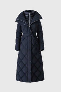LAURELLA is a long belted coat insulated with GRS-certified down. Featuring a removable lightweight down bib, diamond quilting, and wide collar, it offers sophisticated styling and versatile performance. The storm cuffs provide extra coverage, while underarm ventilation provides comfort on milder days. DETAILS - Down trench coat - Lightweight stretch recycled nylon - GRS-certified recycled down - 2-in-1 construction with removable lightweight down bib - Diamond quilted body and sleeves - Wide collar with center front placket and snaps - 2-way center front zipper closure - Adjustable sash belt at waist - Welt pockets with zippered openings - Inner welt pocket with zipper - Storm cuffs and rib knit cuffs - Embroidered eyelets for ventilation - Machine washable - Fitted silhouette - Temperature Rating: -15°C SIZE & FIT - FITTED – Our signature fit, closest to the body. - Designed to be worn with light layers, all while keeping you warm. - For heavier layering, we recommend sizing up. - The model is 5'11" (180 cm) and wears a size S. - Coat length from shoulder to hem: 52.25'' / 133 cm. COMPOSITION & CARE - Shell: 82% recycled nylon, 18% elastane/spandex. Lining: 82% recycled nylon, 18% elastane/spandex. Filling: 85% recycled down, 15% recycled feathers. Water-repellent, water-resistant. - Close zippers. Remove fur. Remove all removable trims. Wash inside out. Wash in domestic machine in water not exceeding 40°c, at normal setting. Use mild detergent. remove immediately after washing. Do not soak. Tumble dry low heat with tennis balls, until fully dried (1to 3 hours). Do not wet-clean. Do not bleach. Do not wring. Do not iron or press. Dry clean using oil based solvent only. Do not use perchloroethylene.