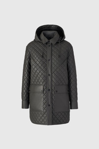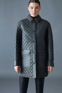 LITZY is a longline quilted leather jacket that blends modern polish with utilitarian ease. Featuring a diamond-quilted design and padded structure, it’s finished with a shirt collar, oversized patch pockets, and a removable hood for adaptable coverage. A refined cold-weather layer with everyday functionality. DETAILS - Quilted lamb leather jacket - Removable hood with adjustable storm visor - Large patch pockets with flaps and snaps - Shirt collar - Dropped shoulder - Diamond quilting - Padded details - Cuff with snaps - Center front placket with snaps - Binding finishing - Fully lined SIZE & FIT - OVERSIZED – Casual and cool fit for layering. - Designed to be worn with heavy layers or alone for an edgy look. - For a more fitted look or for petite customers, we recommend to size down. - The model is 5'11" (180 cm) and wears a size S. - Coat length from shoulder to hem: 31.5'' / 63 cm. COMPOSITION & CARE - Shell: 100% lamb leather. Lining: 100% polyester. Filling: 100% polyester. - Dry clean by leather specialist using oil based solvent only. Do not use perchloroethylene.