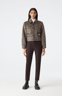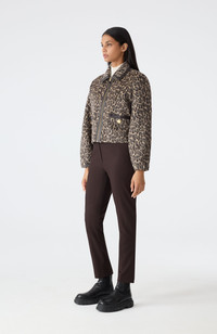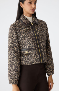 LORAH-A is a cropped jacket styled in standout animal-print jacquard print. Crafted from a blend of alpaca wool, its sculptural balloon sleeves and shirt collar elevate the silhouette. Decorative welt pockets are finished with leather trim and signature “M” shank buttons. A bold, playful layer. DETAILS - Cropped animal-print jacquard jacket - Crafted from a blend of alpaca wool - Shirt collar - Balloon sleeve - Center front zipper closure with leather tape - Leather tape detailing - Large welt pockets with leather tape and decorative “M” branded button - “M” signature shank buttons - Fully lined SIZE & FIT - SEMI-FITTED – Follows your body’s shape with ease. - Designed to be worn with light layers. - The model is 5'11" (180 cm) and wears a size S. - Coat length from shoulder to hem: 19'' / 88 cm. COMPOSITION & CARE - Shell: 70% wool, 20% alpaca, 10% polyamide/nylon. Lining: 52% polyester, 48% viscose. - Dry clean by leather specialist using oil based solvent only. Do not use perchloroethylene.