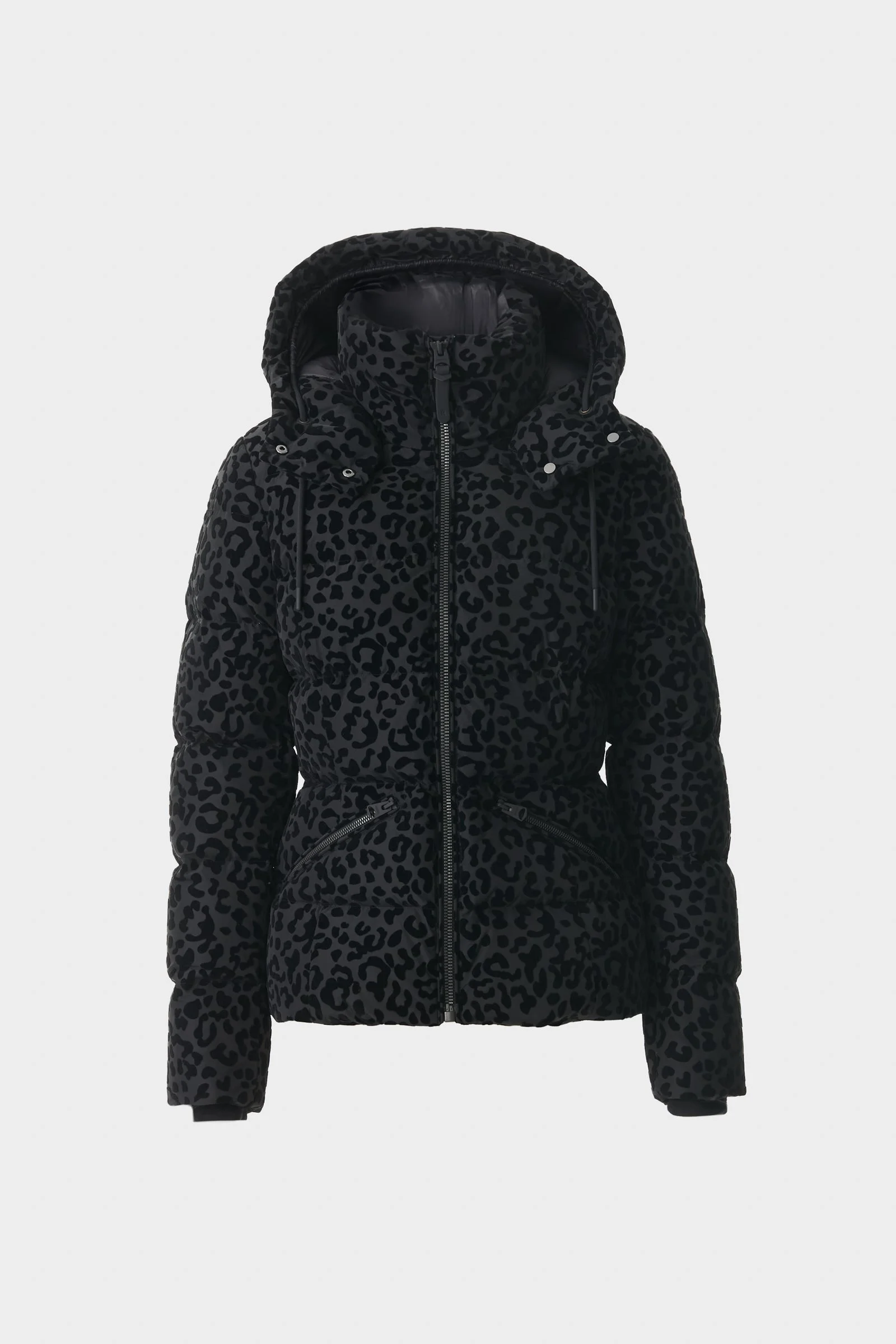 MADALYN-FLPZ is a fitted down jacket crafted from sustainable flocked fabric. Insulated with sustainable down, it’s designed for lightweight warmth and seasonal ease. A removable hood with drawcord visor, rib knit cuffs, and storm-ready features offer comfort in variable conditions, while branded details complete the look. A standout cold-weather piece that blends technical function. DETAILS - Medium down jacket - Temperature Rating: -15°C - Sustainable flocked fabric - Removable hood with adjustable storm visor - Centre front zipper closure - Quilted body and sleeves - Rib knit storm cuffs - Zippered waist pockets and inside pocket - Underarm eyelets for ventilation - Metal M logo at sleeve - Fitted silhouette SIZE & FIT - FITTED – Our signature fit, closest to the body. - Designed to be worn with light layers, all while keeping you warm. - For heavier layering, we recommend sizing up. - The model is 5'11" (180 cm) and wears a size S. - Coat length from shoulder to hem: 24.25'' / 65 cm. COMPOSITION & CARE - Shell: 100% recycled polyester. Lining: 100% recycled nylon. Filling: 85% recycled down, 15% recycled feathers. water-resistant. - Dry clean by leather specialist using oil based solvent only. Do not use perchloroethylene.