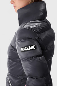 MADALYN-GLO is a high-gloss down jacket crafted from sustainable materials and engineered for deep cold. Designed with a removable hood and adjustable storm visor, this high-performance style features rib knit cuffs, insulated zip pockets, and underarm eyelets for ventilation. A branded drawcord and signature MACKAGE patch finish the look. DETAILS - Down jacket in a glossy finish - GRS-certified recycled down - Removable hood with adjustable storm visor - MACKAGE branded drawcord at hood - Rib knit cuffs - Insulated waist pockets with zippers - Inner welt pocket with zipper - Underarm eyelets for ventilation - Stand collar with removable hood - Center front zipper closure - MACKAGE embossed patch on left sleeve - Fully lined - Machine washable - Fitted - Temperature rating: -15°C SIZE & FIT - FITTED – Our signature fit, closest to the body. - Designed to be worn with light layers, all while keeping you warm. - For heavier layering, we recommend sizing up. - The model is 5'11" (180 cm) and wears a size S. - Coat length from shoulder to hem: 24.25'' / 64 cm. COMPOSITION & CARE - Shell: 100% polyurethane. Lining: 100% recycled nylon. Filling: 85% recycled down, 15% recycled feathers. water-resistant. - Close zippers. Remove fur. Remove all removable trims. Wash in domestic machine in water not exceeding 30°C at delicate gentle setting. Wash inside out. Use mild detergent. Remove immediately after washing. Do not soak. Tumble dry at low heat with tennis balls until fully dried (1 to 3 hours). Do not wet-clean. Do not bleach. Do not wring. Do not iron or press. Do not steam. Do not dry clean.