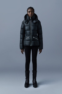 MADALYN is a recycled down jacket for women with a removable snap hood. The (R) Leather shell accentuates the classic down tunnels and modern fitted cut. Rib storm cuffs and the adjustable drawcord storm visor add comfort and protection. A bold lettermark Velcro sleeve patch and 3D zip tab covers complete the look. Water resistant, repellent, breathable, and machine washable. Fine craftsmanship and sleek detailing make a multi-season standout. - (R) Leather recycled down jacket - 800 fill power - Deep Cold: Down to -20°C - Removable snap hood with adjustable drawcord storm visor - Centre front zip closure - Contrast lining - Storm cuffs - Zip waist pockets with 3D pull tab cover - Inside pocket - Lettermark logo Velcro patch on left sleeve - Machine washable - Fitted silhouette SIZE & FIT - FITTED – Our signature fit, closest to the body. - Designed to be worn with light layers, all while keeping you warm. - For heavier layering, we recommend sizing up. - Coat length from shoulder to hem: 24.5'' / 62.23 cm. COMPOSITION & CARE INSTRUCTIONS - Shell (In-visible): 100% lamb leather. Lining (Woven. In-visible): 100% polyamide/nylon. Filling (Down): 90% chinese white duck down, 10% chinese duck feathers. Water-repellent & water-resistant. - Dry clean by leather specialist using oil based solvent only. Do not use perchloroethylene.