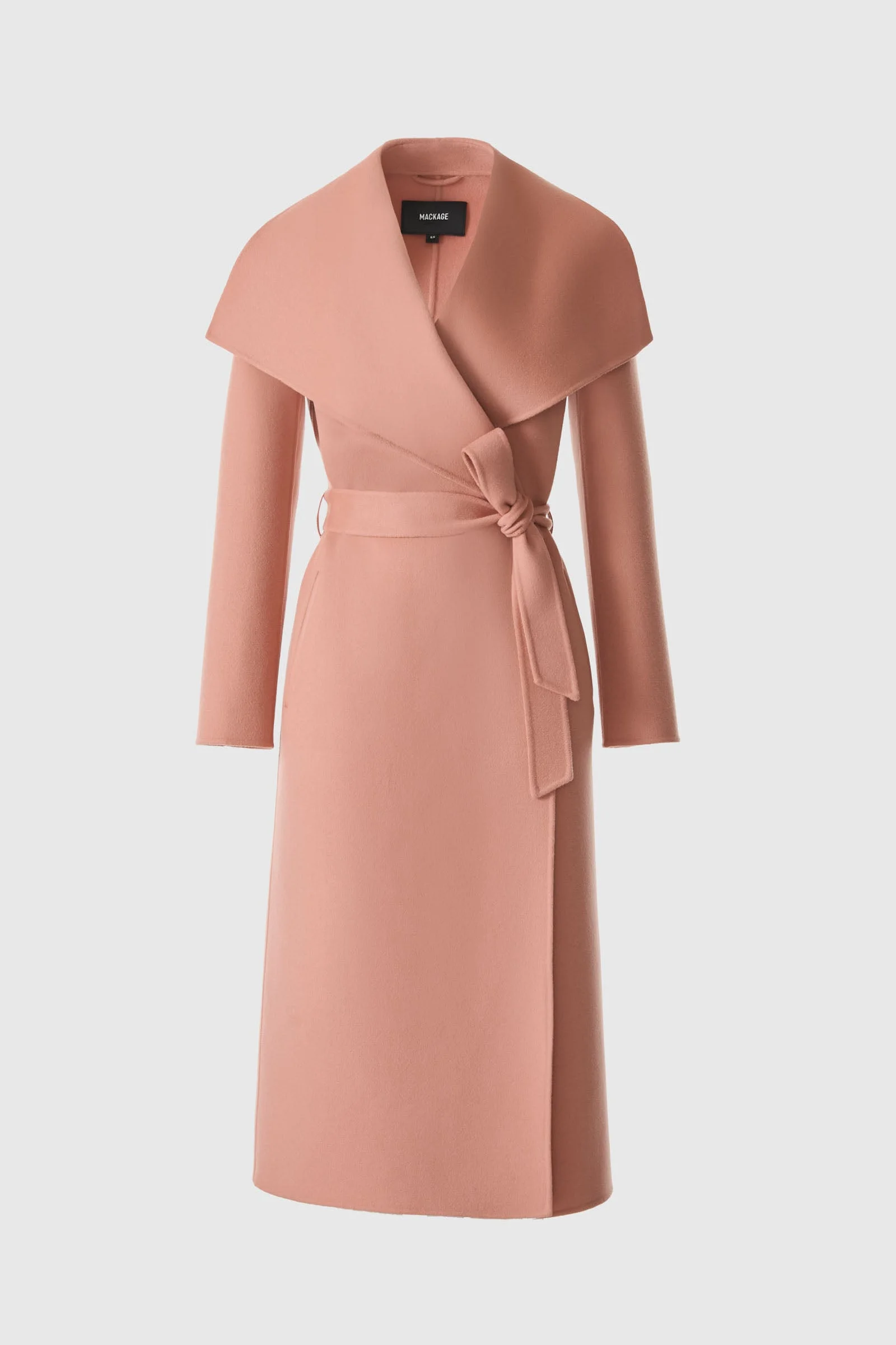 MAI-CN is a long wrap coat for women handmade from luxurious soft double-face wool. The fluid drape provides a relaxed-fit and unlined layer for maximum comfort in mild climates. The waterfall collar adds a sophisticated appeal while leather welting highlights the waist pockets and belt loops. DETAILS - Long wrap coat - Soft double-face wool - Handmade - Waterfall collar - Wool sash belt - (R) Leather and wool belt loops - Waist pockets with leather trim - Unlined - Relaxed fit SIZE & FIT - RELAXED – Loose fit for on the go comfort. - Designed to be worn with heavier layers. - The model is 5'11" (180 cm) and wears a size XS. - Length from shoulder to hem: 47 ½'' / 120 cm. COMPOSITION & CARE - Shell: 100% wool. Combo: 100% lamb leather. - Dry clean by leather specialist using oil-based solvent only. Do not use perchloroethylene.